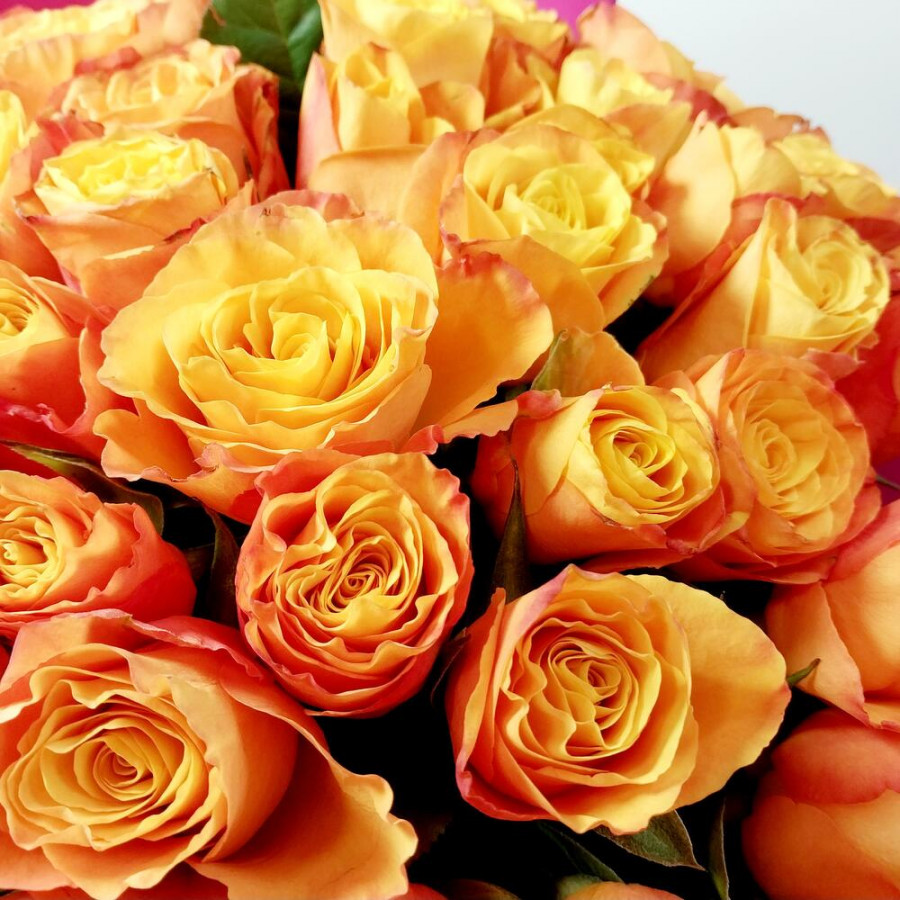 На фото букет из 35 оранжевых роз. В составе: роза 35 шт, дизайнерская упаковка 1 шт, атласная лента 1 шт, . Все цветы свежие и ароматные, букет красиво оформлен и отлично подходит для подарка. Доступна доставка цветов или самовывоз.