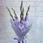 На фото букет из 5 сиреневых гладиолусов. В составе: гладиолус 5 шт, дизайнерская упаковка 1 шт, . Все цветы свежие и ароматные, букет красиво оформлен и отлично подходит для подарка. Доступна доставка цветов или самовывоз.